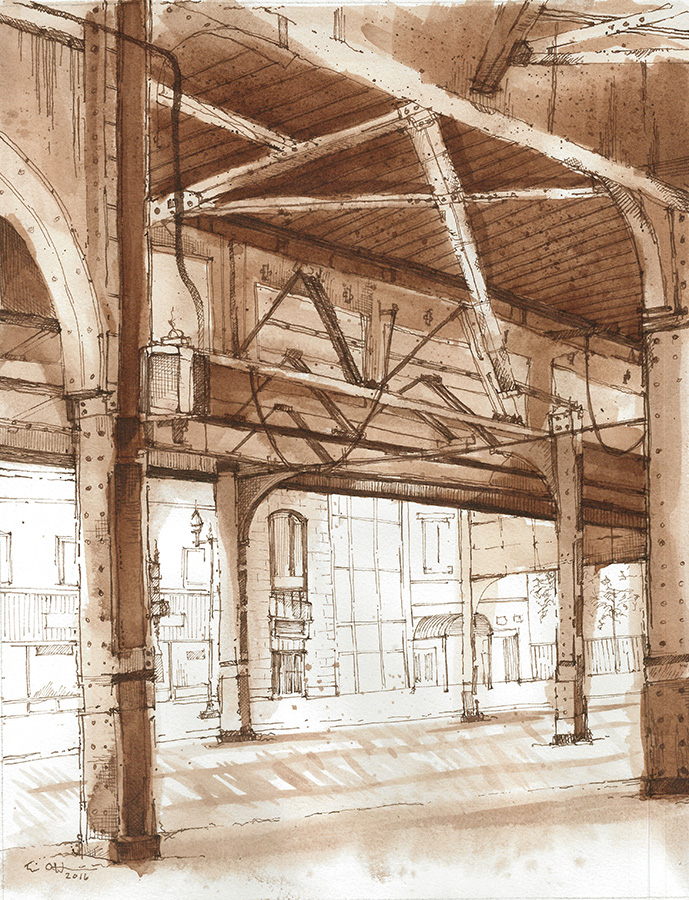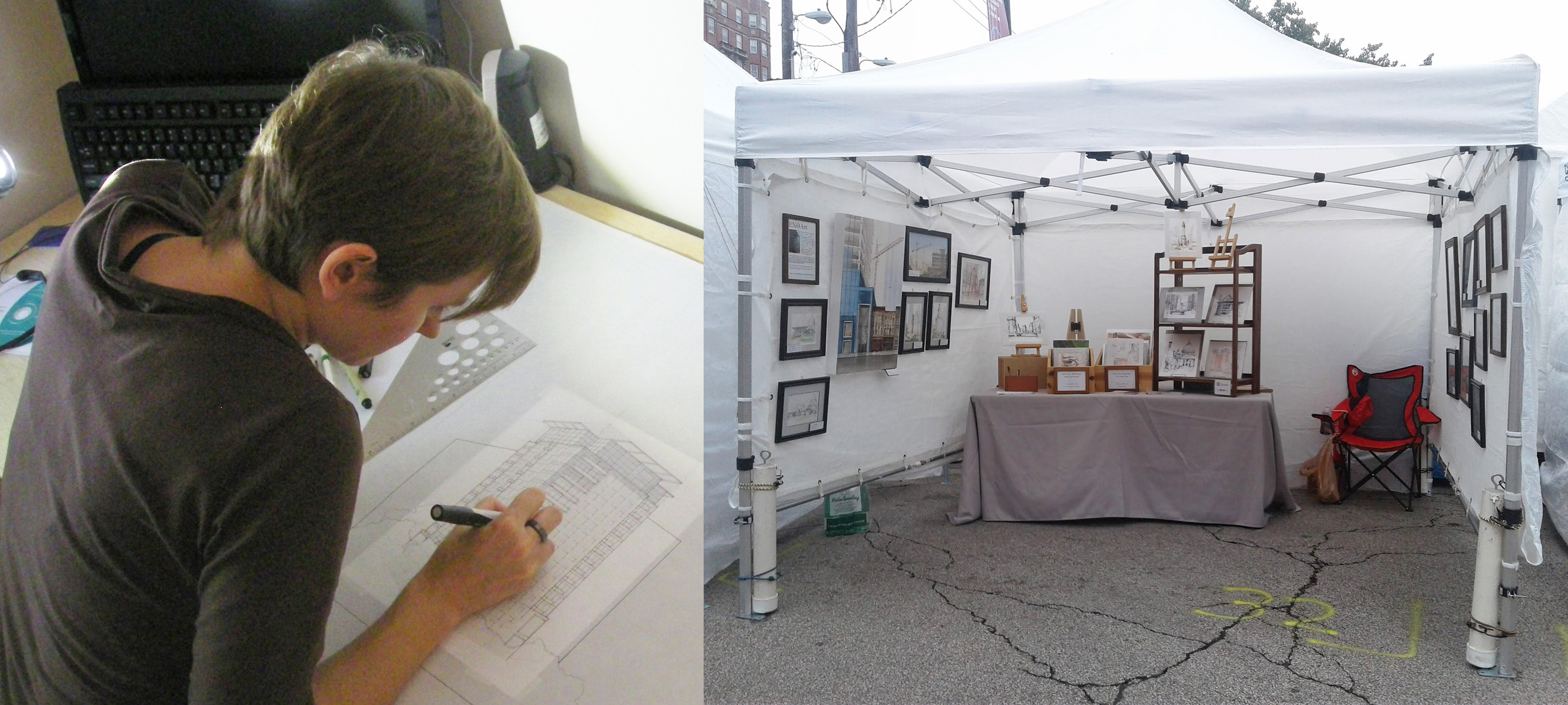 Erin has been specializing in traditional pen and ink architectural drawing since attending the University of Wisconsin-Milwaukee, 2009-2011. Armed with an existing degree in digital animation from Columbia College Chicago (class of 2005) she took a more artistic approach to the study of buildings and is now an illustrator for an architecture firm in Chicago.